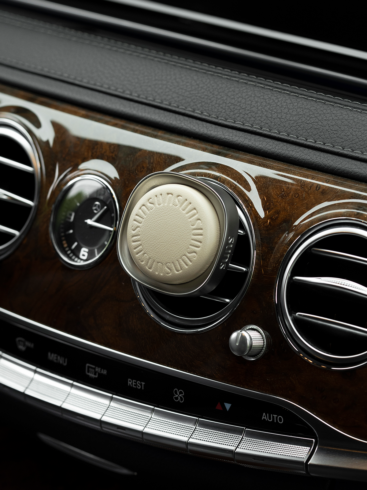 Refined scent with thoughtful design—crafted to elevate your drive with both function and elegance. Each car diffuser is made with a smooth PU leather-wrapped face, paired with a lightweight zinc-alloy and aluminum shell that offers both durability and a premium feel.