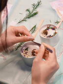 Add final touches using decorative elements like crystals or decorative dried flowers. Each participant can customise their candle design to express individuality while creating something visually and emotionally memorable.