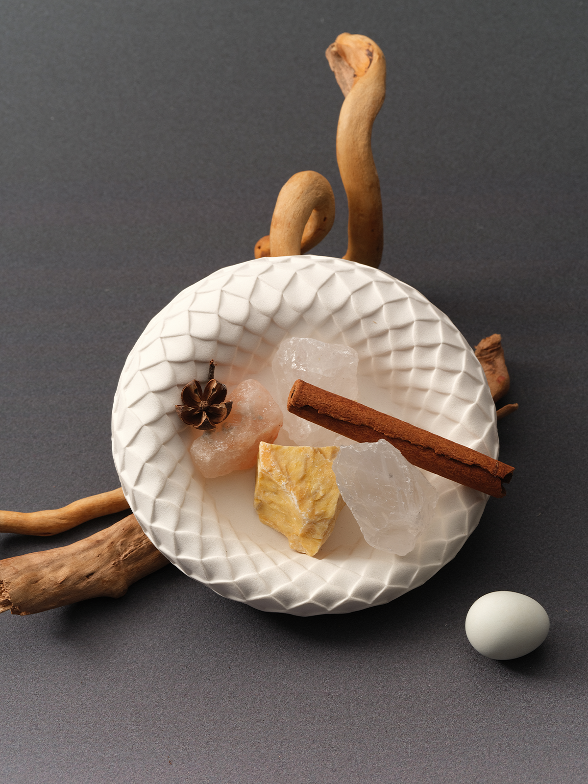 Each vessel features sculpted, scale-like textures glazed in soft matte tones. As the surface naturally crackles over time, fine golden lines emerge—symbolizing beauty born through change.